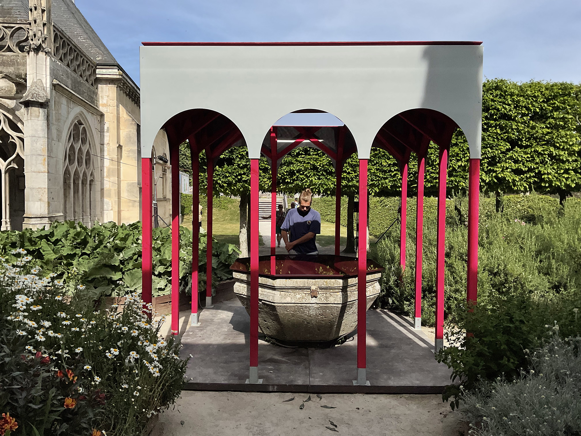 2022, bois, métal, dibond miroir, 3 x 3 x 3 m
